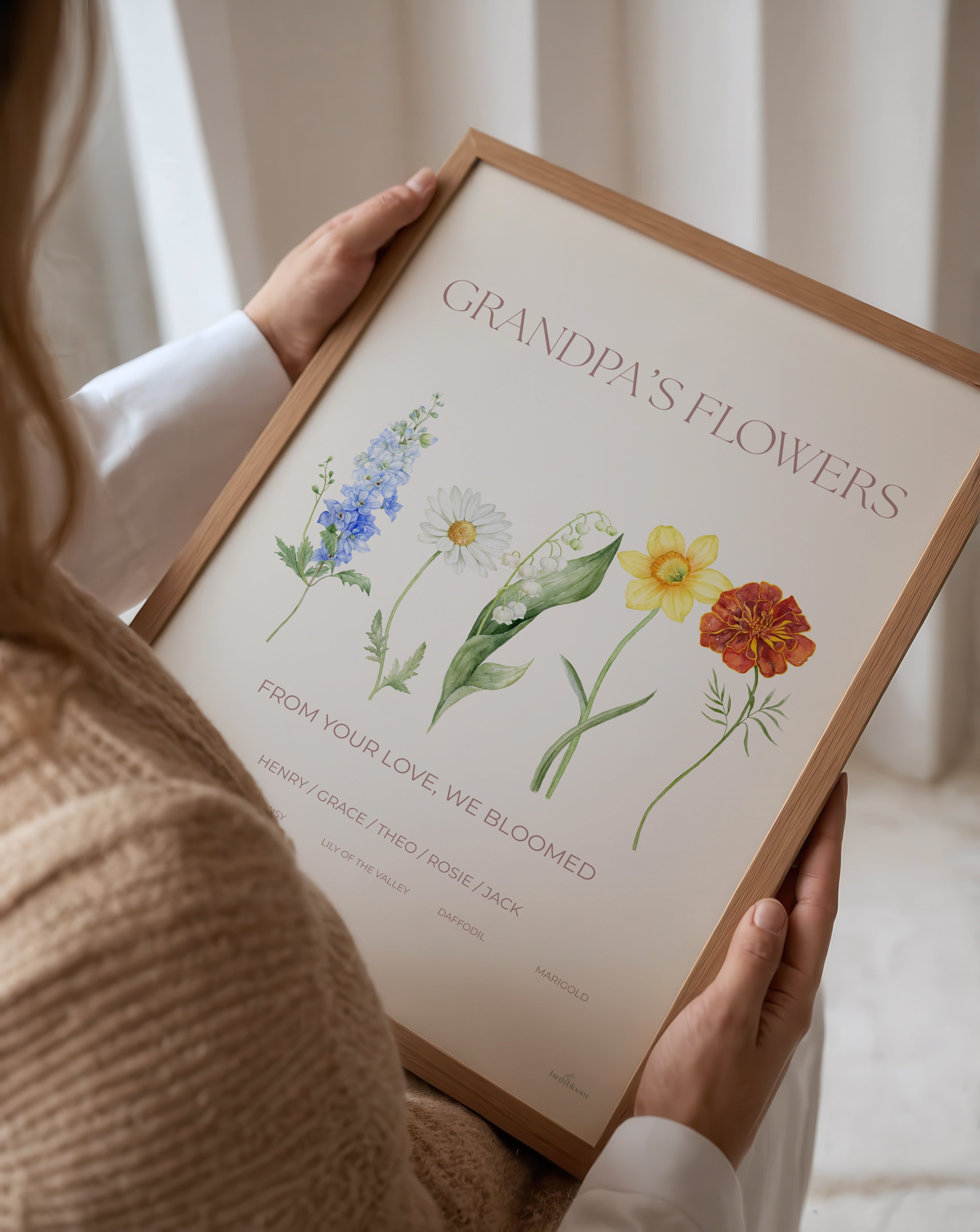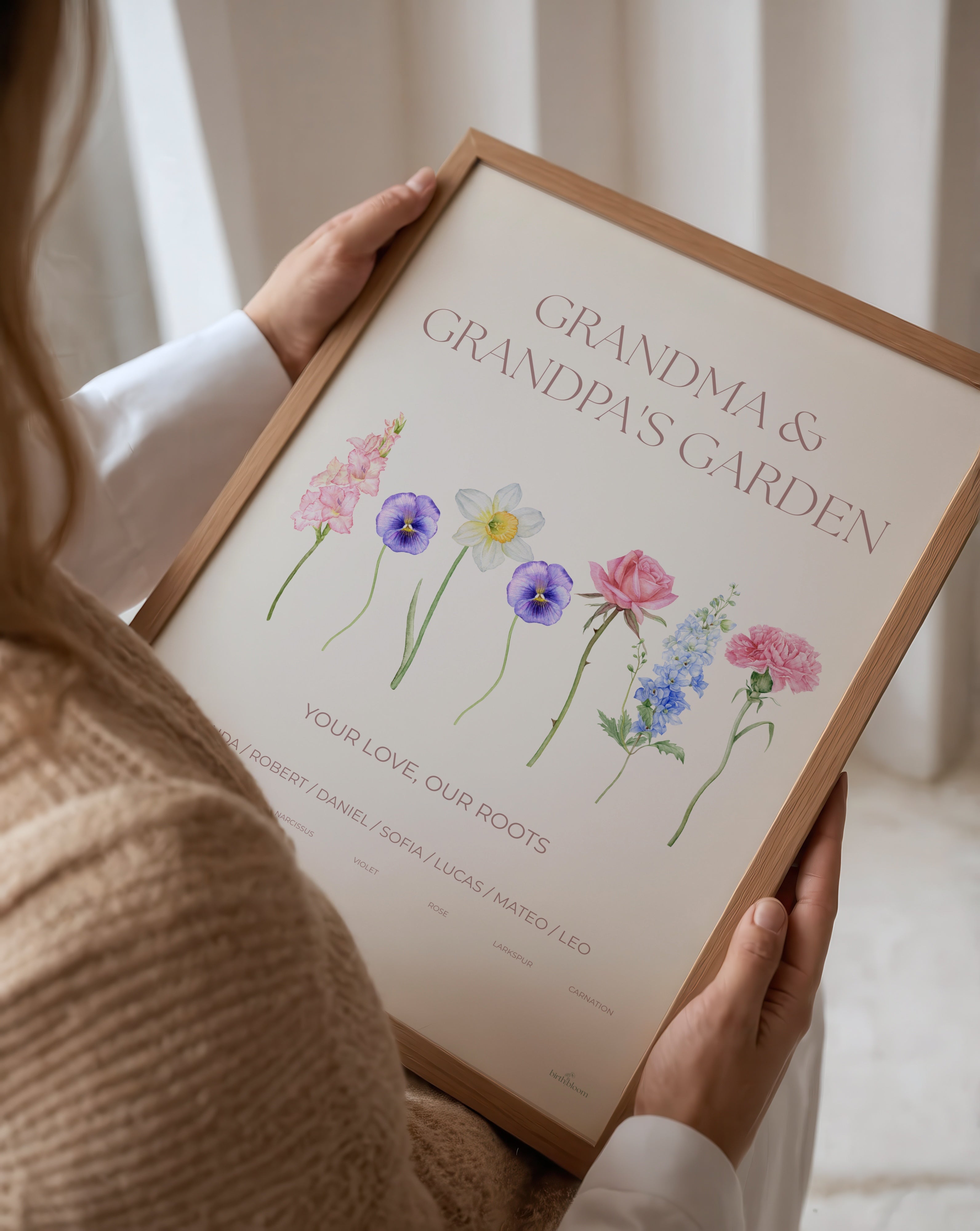 Make grandma tear up with joy when she opens her gift. What could be more touching than a poster with all her grandchildren together, along with a heartfelt message about the flowers she helped grow?