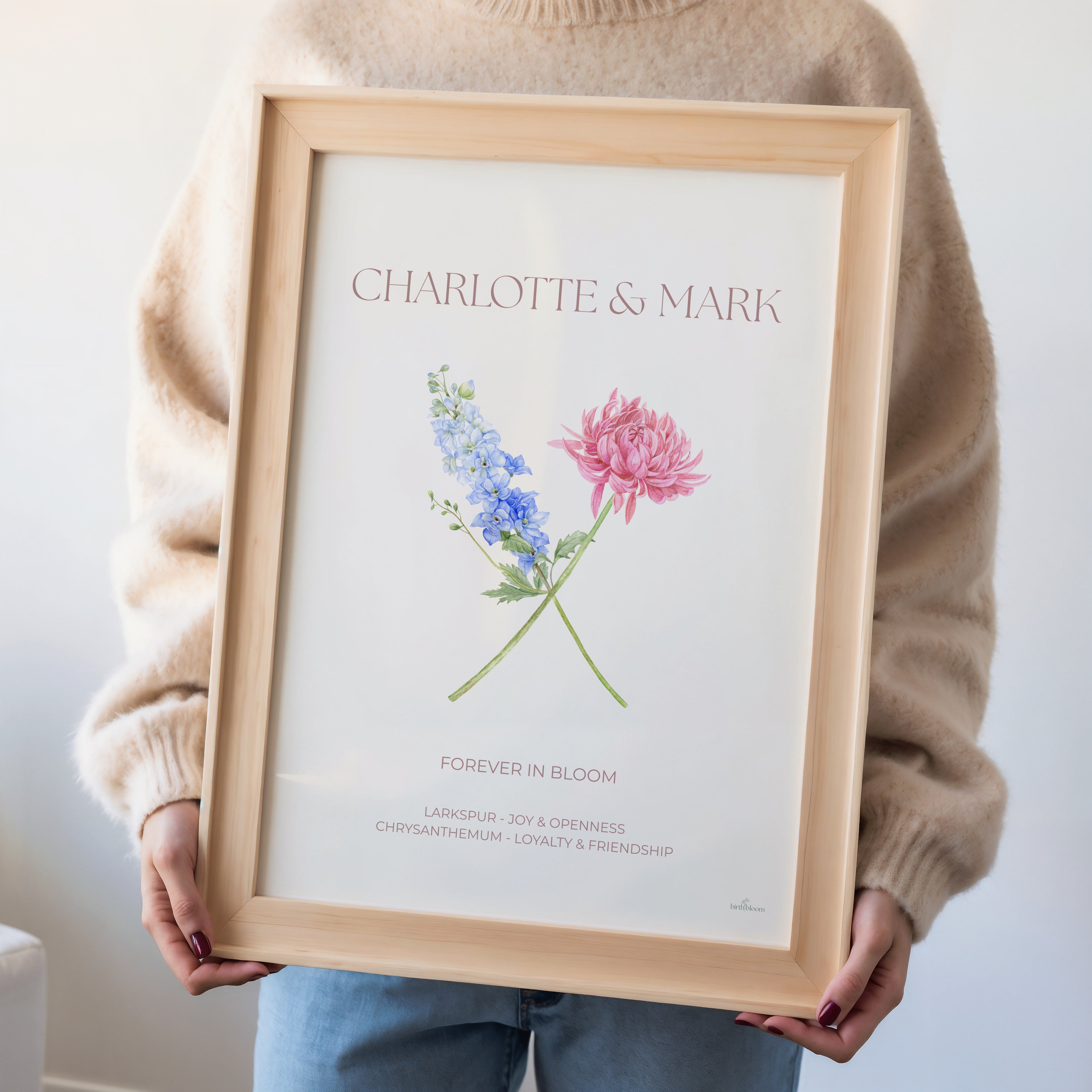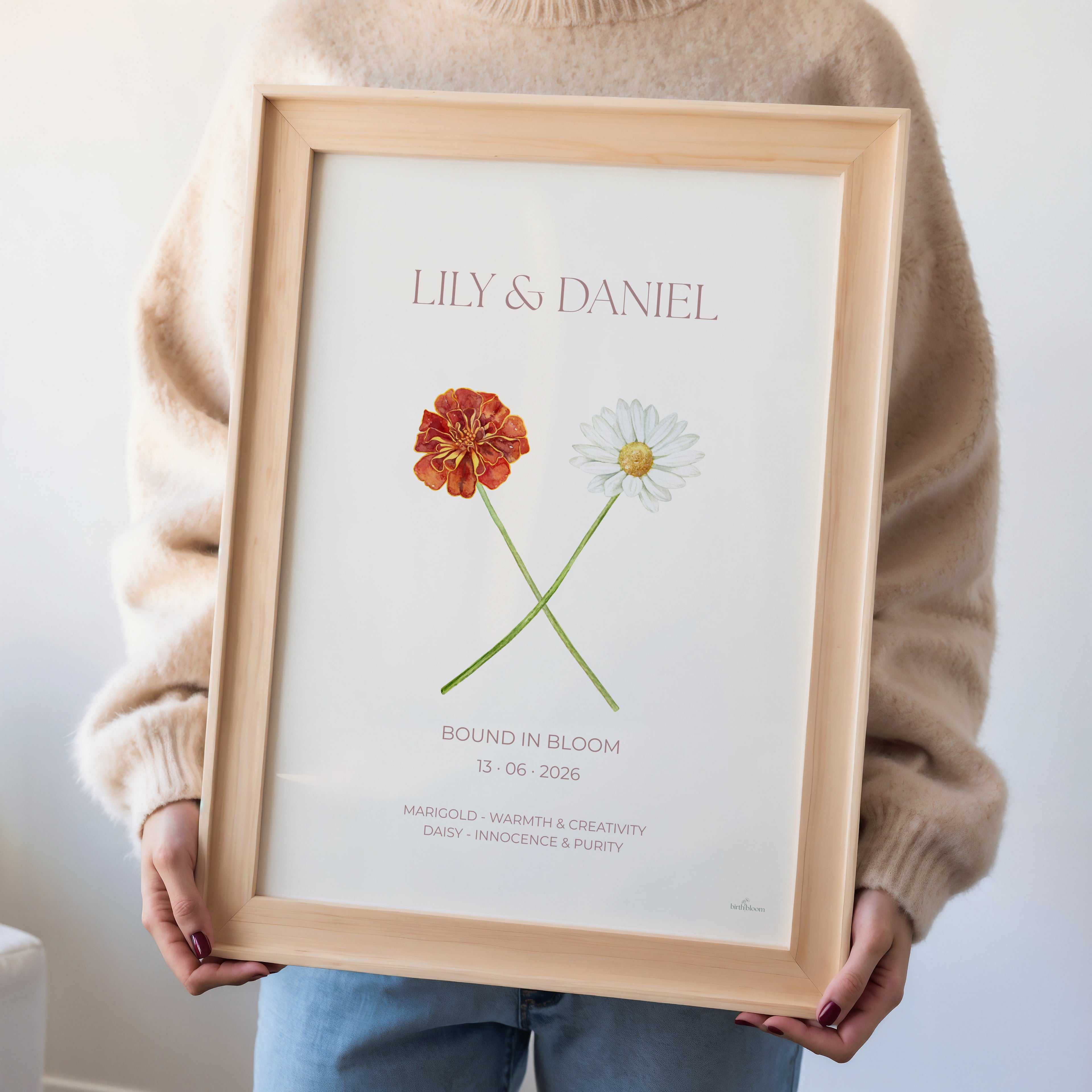 With “The Duo”, two birth flowers come together with their special date and a personal message that celebrates their love.