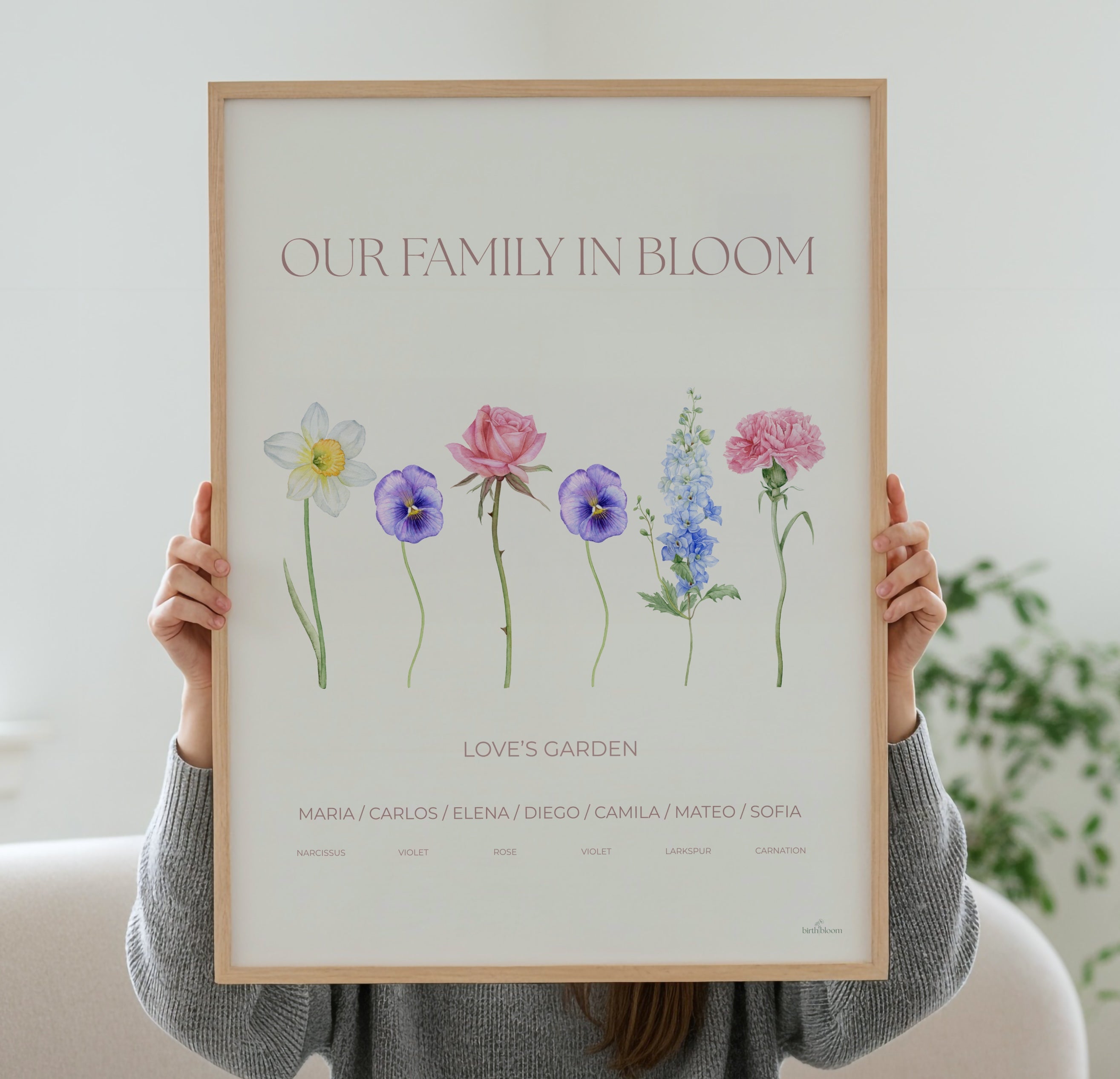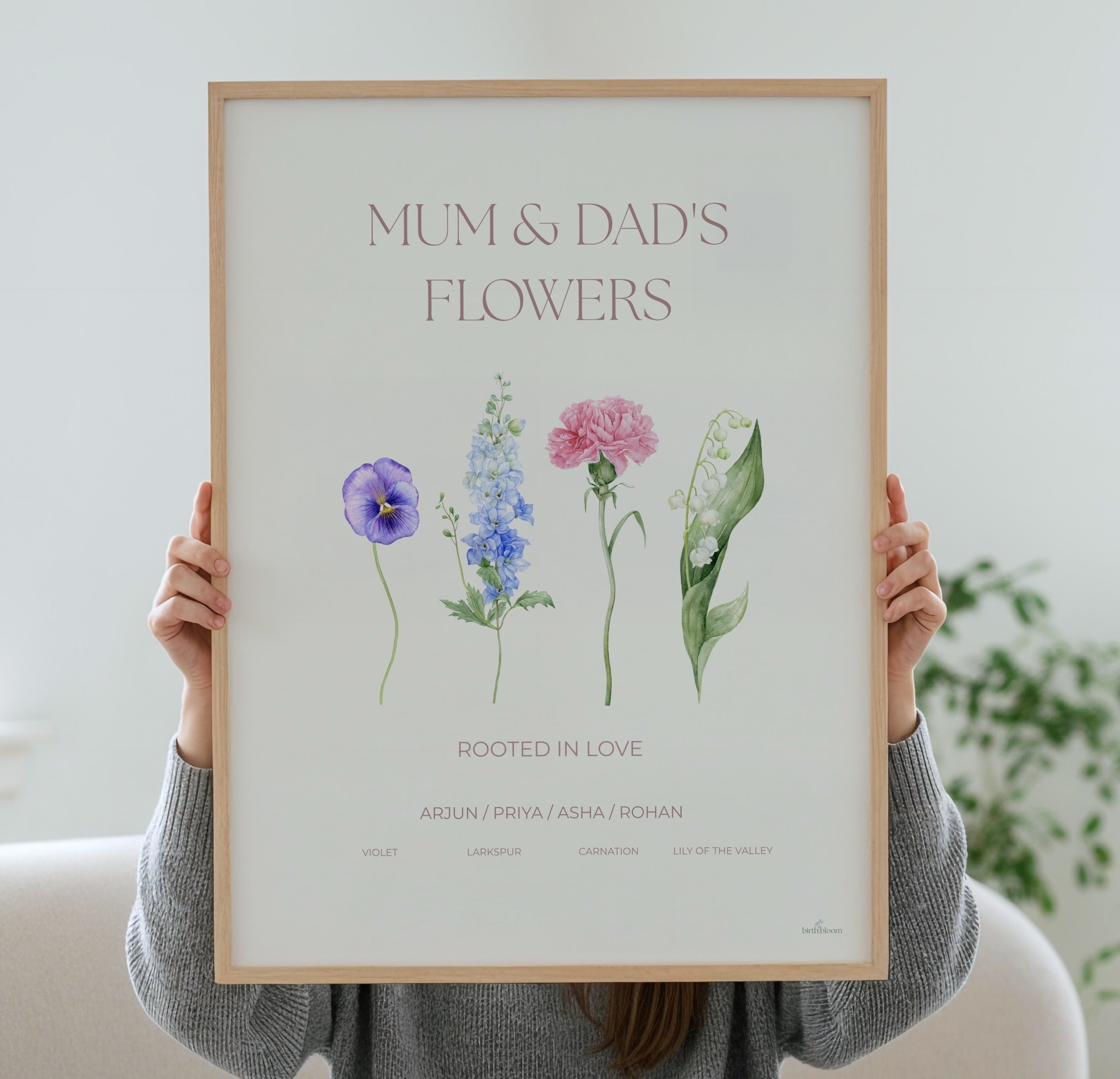 Looking for a meaningful gift for your parents? “The Family” is a beautiful choice, allowing you to include the whole family in a piece of art created from your birth flowers.